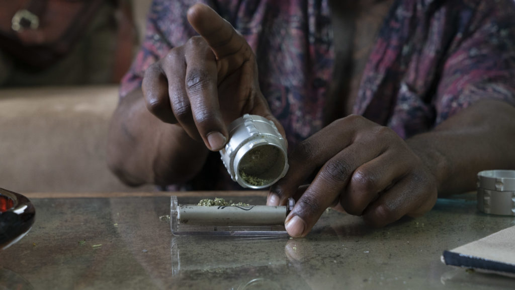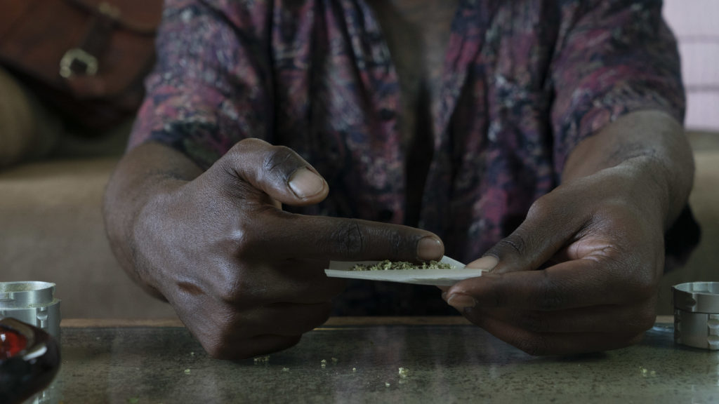 - Nehmen Sie ein anderes Papier, füllen Sie es mit Cannabis, drehen Sie es von der Mitte aus, lecken Sie es und schließen Sie es.