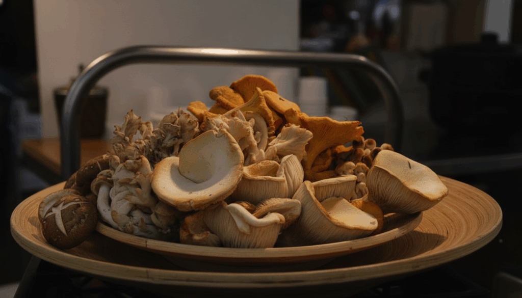 Harvesting mushrooms at the right stage is crucial for both quality and continued growth. Timing your harvest correctly maximizes flavor and shelf life. The perfect time to harvest oyster mushrooms is just before the cap edges begin to flatten out. For shiitake, the perfect time is when the veil underneath breaks but before the cap fully opens. Lion’s mane should be picked when spines are still short and white. When harvesting mushrooms, gently grab each one at the base and twist and pull rather than cutting—this prevents stem remnants from rotting and contaminating future flushes. Fresh mushrooms store refrigerated for 7-10 days in paper bags. Avoid plastic, which traps moisture and causes sliminess. For long-term storage, dehydrate at 125°F until cracker-dry, then store in airtight containers for up to a year.