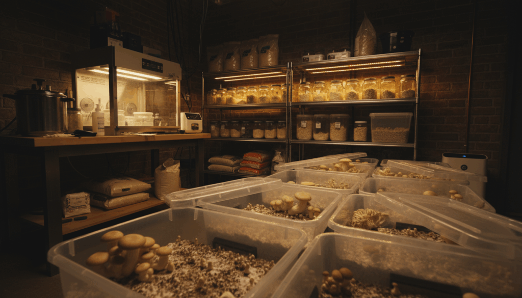 Stepping up to liquid culture requires sterilized substrate bags, injection ports, micropore tape, and a still air box for contamination-free inoculation. A pressure cooker becomes invaluable if you want to prepare your own grain spawn. Advanced growers should review Penn State’s Commercial Mushroom Growers Handbook for detailed technical specifications on equipment, substrate formulations, and environmental controls. While written for commercial operations, the principles scale down perfectly for serious hobbyists.