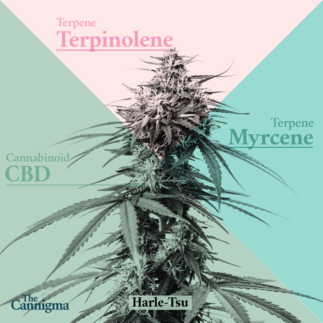 Like Harle-Tsu, it is a high-CBD chemovar with a sweet flavor known for bringing on a relaxing sensation. And like the Harlequin CBD strain used to breed Harle-Tsu, it’s a colorful strain that’s beautiful to look at (Harlequin was named as such because of its colorful appearance). It can also produce a hashy and musky aroma, likely due to the afghan roots of Harle-Tsu.